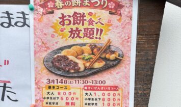 告知が遅くなり申し訳ありません。3月14日 土曜日 11:30~13:00とするも無くなり次第終了となりますが、もち食べ放題開催します。細部は店頭のチラシを貼らせて頂きます。最近は、ホームページよりもインスタで色々と告知させて頂いておりますの…
